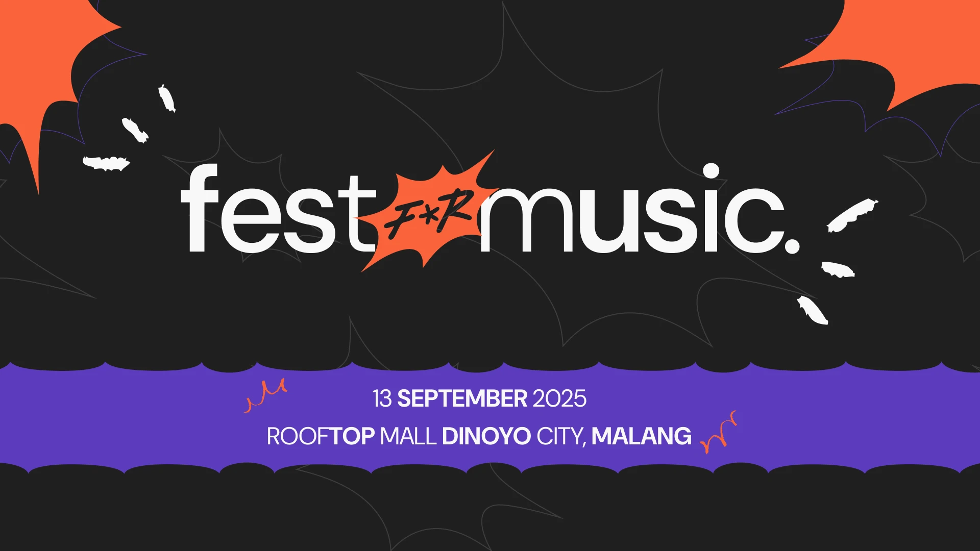 - Pembelian tiket Fest for Music hanya dapat dilakukan melalui website resmi milik Fest for Music. Pihak penyelenggara tidak bertanggungjawab apabila pembelian tiket dilakukan diluar laman resmi Fest for Music 2025.